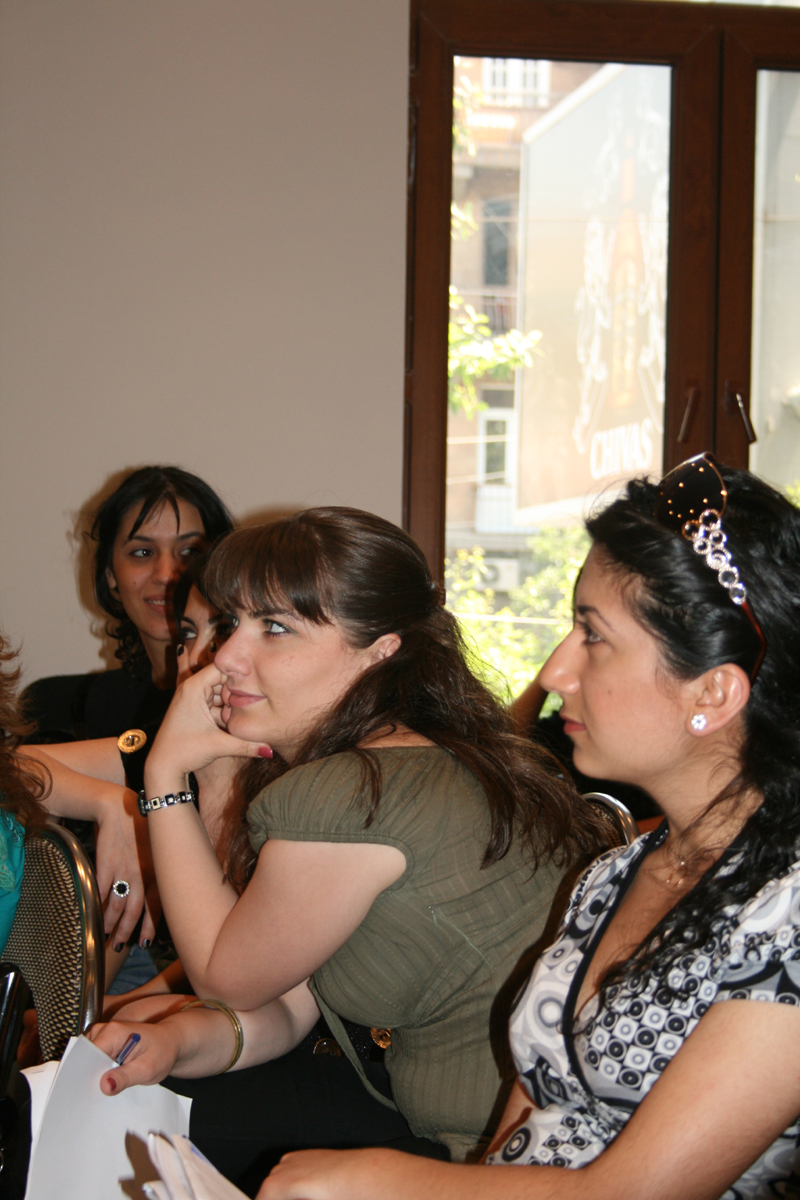Դասընթացի մասնակիցներին ողջունեց ՀՀ Մարդու իրավունքների առաջին պաշտպան, "Ժառանգություն" խմբակցության քարտուղար Լարիսա Ալավերդյանը: Օրվա դասը վարում էին "Քաղաքացիական նախաձեռնությունների ազատ ամբիոն" ՀԿ նախագահ Գայանե Մարկոսյանը և Հայաստանի Հելսինկյան կոմիտեի նախագահ Ավետիք Իշխանյանը: Օրվա թեման էր` "Ժողովրդավարության հիմունքներ": Դասըթացը հարուստ էր ոչ միայն տեսական, այլև գործնական պարապմունքներով: