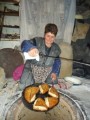 Տիկին Սաթենիկը խնամքով կտրատում էր խիժից պատրաստած կերակուրը` դալը և հյուրասիրում իր հյուրերին: Իսկ այդ ընթացքում շիկանում էր թոնիրը, որտեղ շուտով թարմ ու տաք- տաք լավաշ էր թխվելու: Իրենց հերթին էին սպասում սեղանին խնամքով շարված խմորի գնդերը: Տիկին Սաթենիկը պտտում է օդում բացված խմորի շերտերը, որոնք խնամքով գրտնակում է իր քույրը: