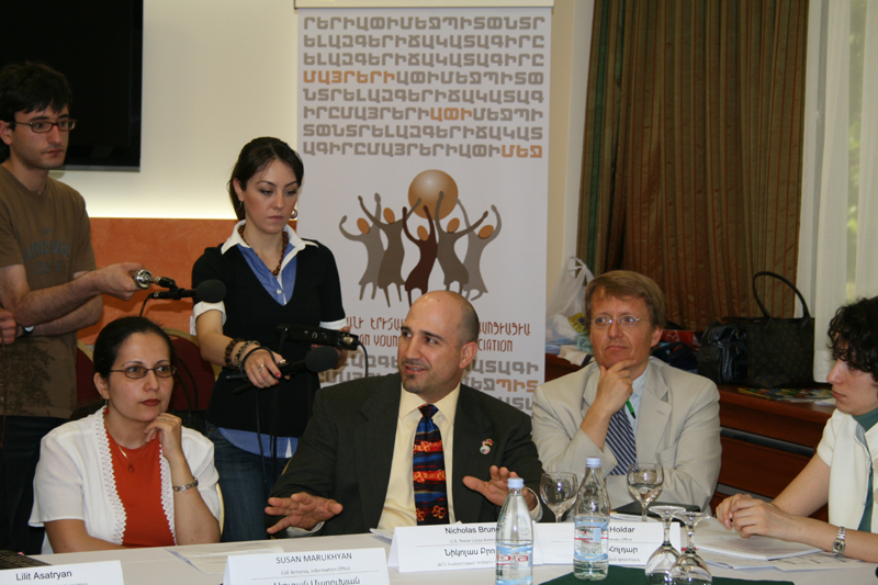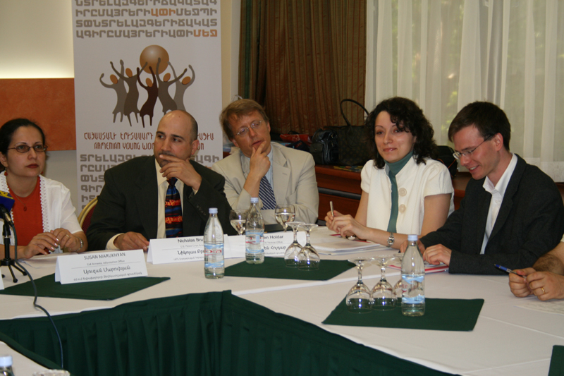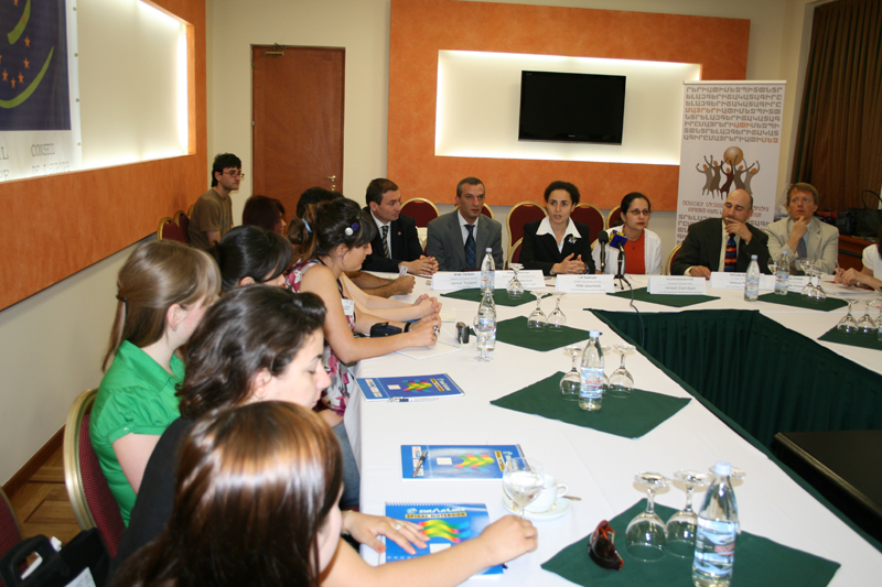 The project participants were greeted also by Ms Susan Marukhyan – Director of CoE Information office in Yerevan, Mr Artak Davtyan – Chair of the Commision of Education, Science, Culture, Youth and Sport of the National Assembly of the Republic of Armenia, Mr Arsen Karamyan – Deputy Minister of Sports and Youth Affairs of the Republic of Armenia, Mr Sven Holdar – Democratization Officer of OSCE Yerevan office, Mr Nicholas Bruno – Director of US Peace Corps Armenia.