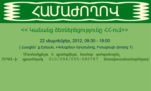 Համաժողովին մասնակցելու համար կարող եք գրանցվել` զանգահարելով ՀԵԿԱ գրասենյակ` 010/94/55 58-07-87 հեռախոսահամարներով: