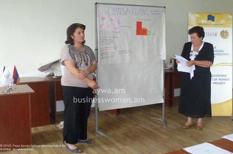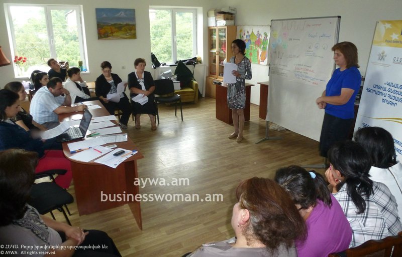 The final presentation of the participants’ business plans will take place on July 10, 2014. Active and beginner women entrepreneurs, agriculturists, as well as formal and non-formal women’s groups from Odzun, Karmir Aghek and Mghart communities participated in the business trainings. The training is conducted through Competency-Based Economies through Formation of Enterprises (CEFE) methodology. The purpose of these business trainings is to support the improvement of social and economic situation of women in Lori region by developing women’s entrepreneurship skills and knowledge.