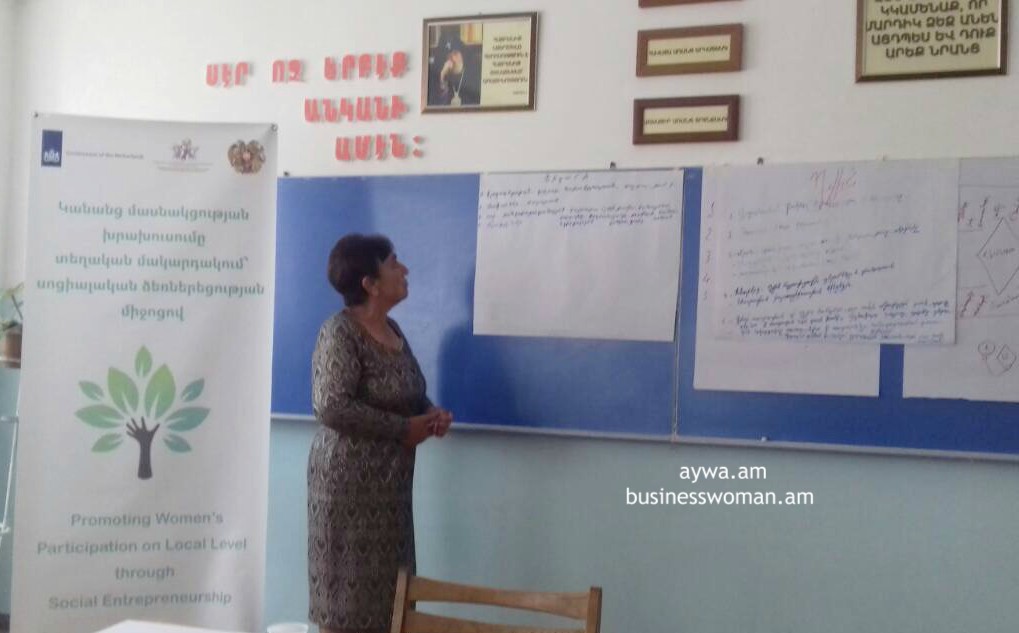 «Կանանց մասնակցության խրախուսումը տեղական մակարդակում՝ սոցիալական ձեռներեցության միջոցով» ծրագրի շրջանակներում ՀՀ Արարատի մարզի կանանց համար մեկնարկել է կարողությունների զարգացման դասընթացը: Դասընթացին մասնակցում էին ՀՀ Արարատի մարզի Սուրենավան, Դվին, Նիզամի համայնքների կանայք: