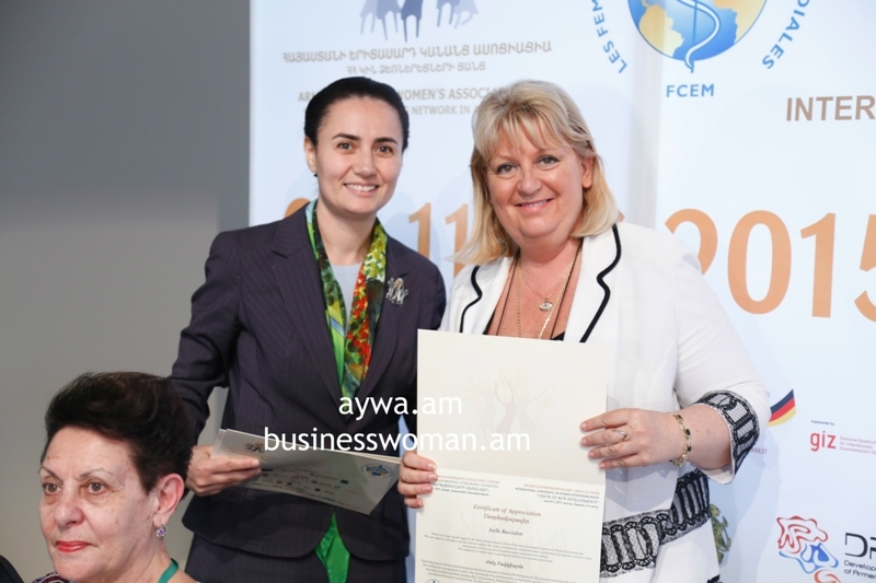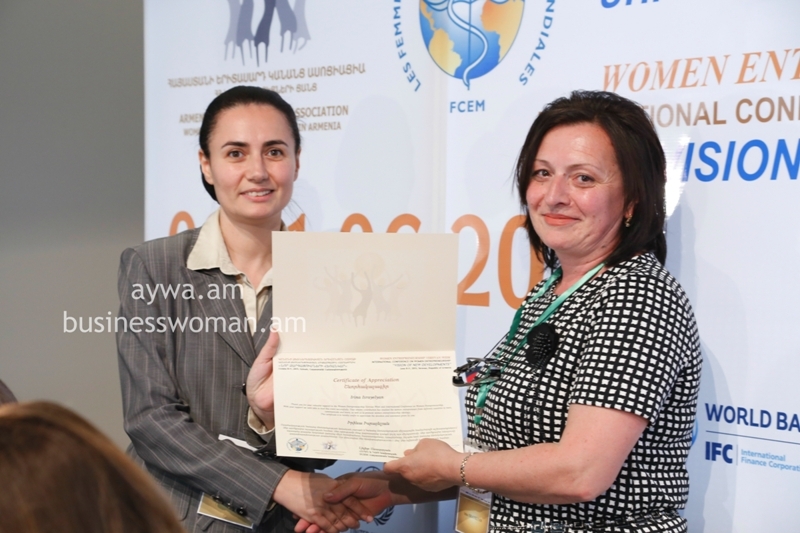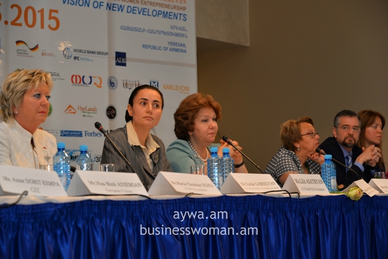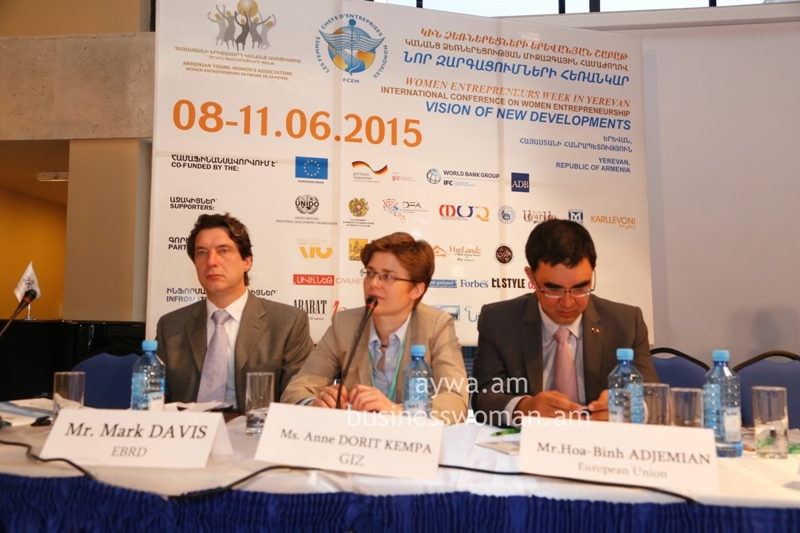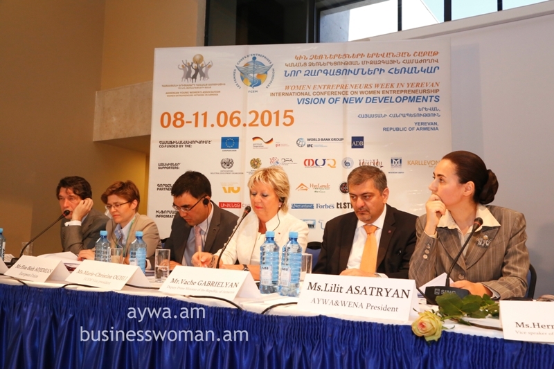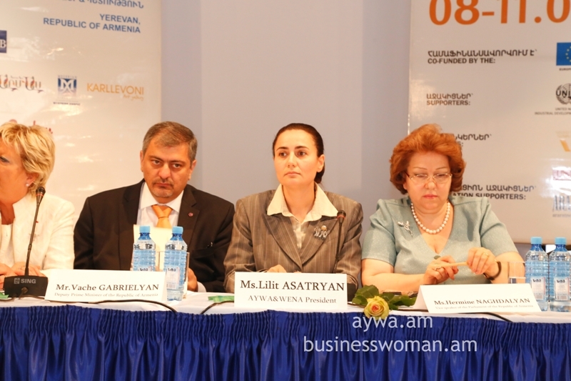 Welcoming speeches were made by Mr.Vache Gabrielyan, Vice Prime Minister of the Republic of Armenia, Ms.Hermine Naghdalyan, Vice speaker of the Parliament of the Republic of Armenia, Mr.Richard M.Mills, Jr., H.E. U.S. Ambassador to Armenia, Mr.Hoa-Binh Adjemian, EU, Head of Cooperation section, Ms. Marie Christine Oghli, FCEM Vice president on behalf of FCEM World president Laura Frati Gucci, Mr. Mark Davis, Head of Yerevan Resident Office, EBRD, Mr. David Dole, Resident Representative of Asian Development Bank in Armenia, Mrs.Anahit Simonyan, Head of UNIDO Operations in Armenia, Ms. Anne Dorit Kempa, GIZ Country Director, Mr. Gegham Petrosyan, Director of SME DNC of the Republic of Armenia, Ms. Gayane Mkrtchyan, IFC Operations Officer, Mrs. Nestan Kirtadze, President of International Development and Leadership Network and International Successful Women’s Club.