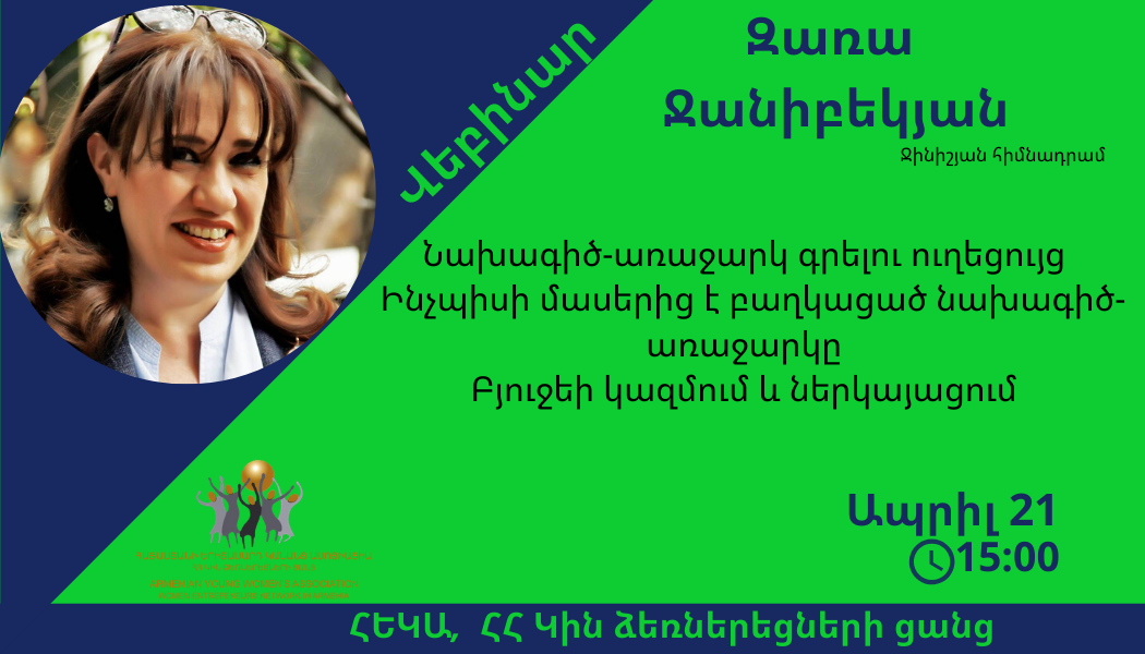 «Նախագիծ-առաջարկ գրելու ուղեցույց» խորագրով վեբինարը, տեղի կունենա ապրիլի 21-ին, ժամը 15։00-ին։